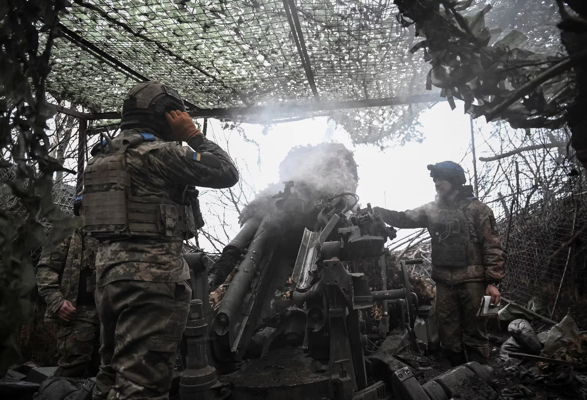 Артилеристи 44-ї окремої артилерійської бригади імені гетьмана Данила Апостола Збройних сил України стріляють з гаубиці M777 у бік російських військ, Дніпропетровська область, Україна, 24 грудня 2025 року — Stringer