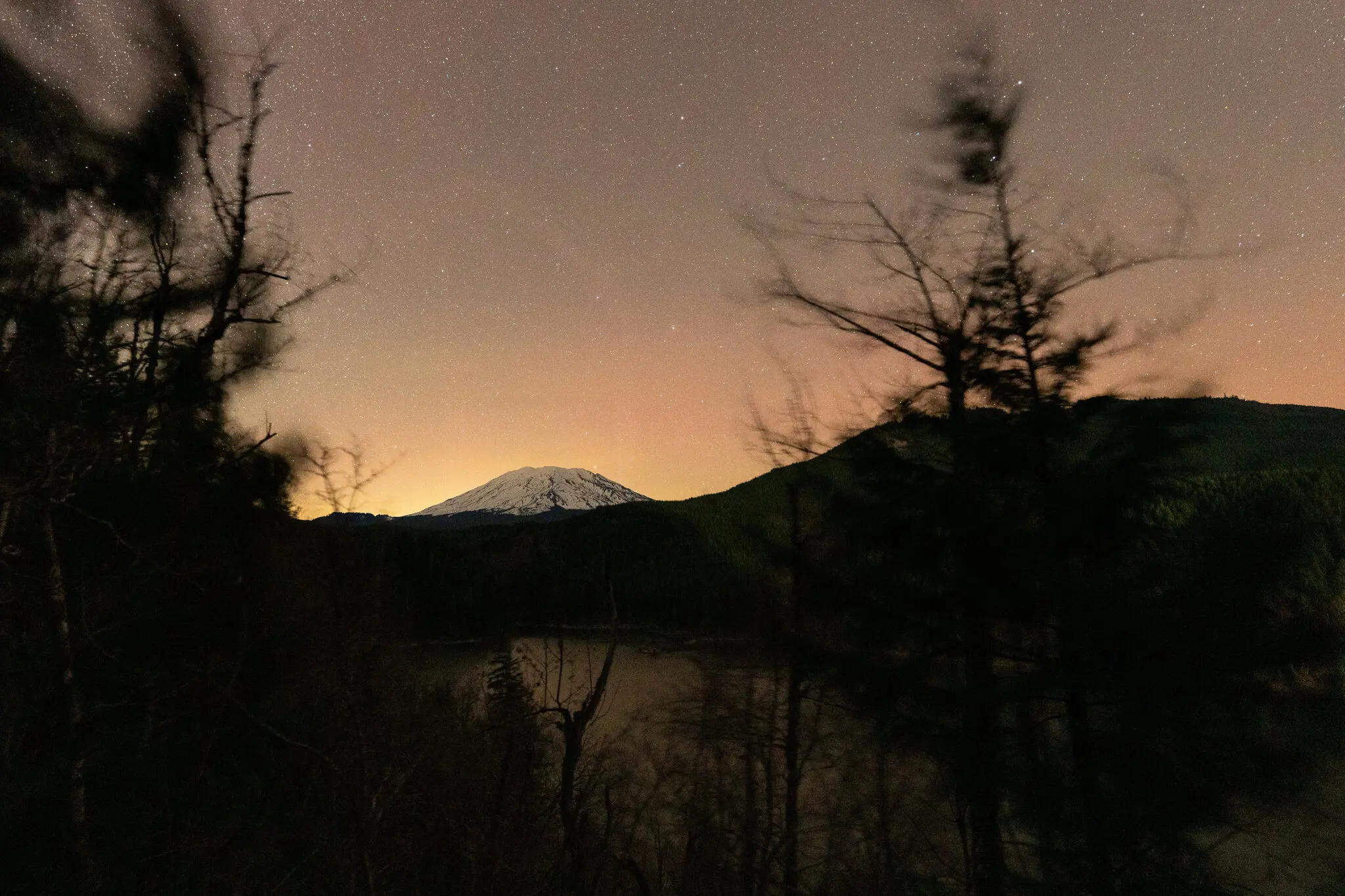 Північне сяйво над горою Сент-Хеленс у місті Кугар, штат Вашингтон, у понеділок — Дженні Кейн/Associated Press