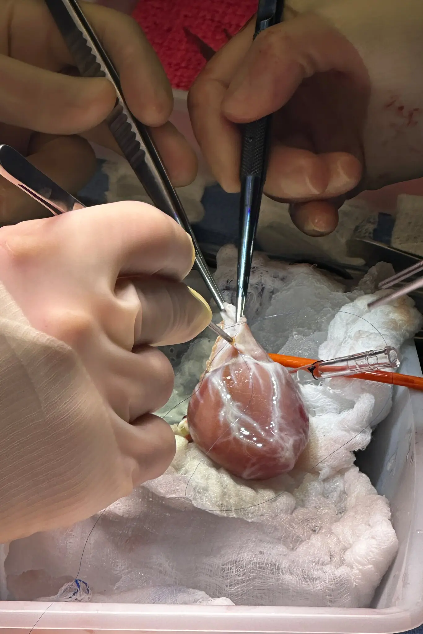 Коли контейнер відкрили, стало очевидно: серце дуже маленьке. Різниця в розмірах означає складніший «підгін» анатомії. На папері трансплантація — це кілька з’єднань, але в реальності дитячий кардіохірург буквально «підшиває» геометрію життя, щоб нічого не перекрутилося.