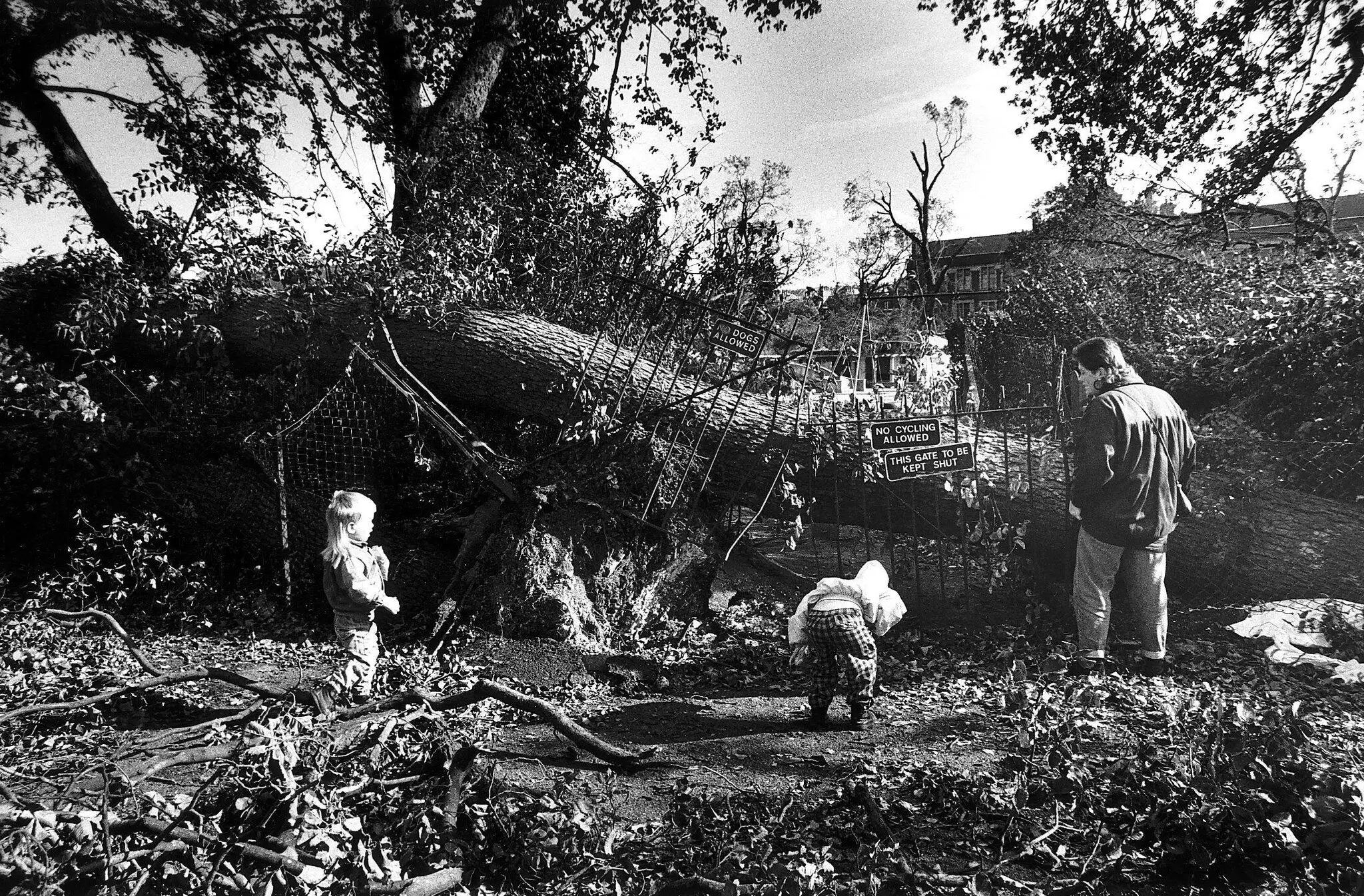 Тієї ночі дерево в Брайтоні, на південному узбережжі, зруйнувало металеві ворота, на які воно впало — Джон Вус, через Alamy