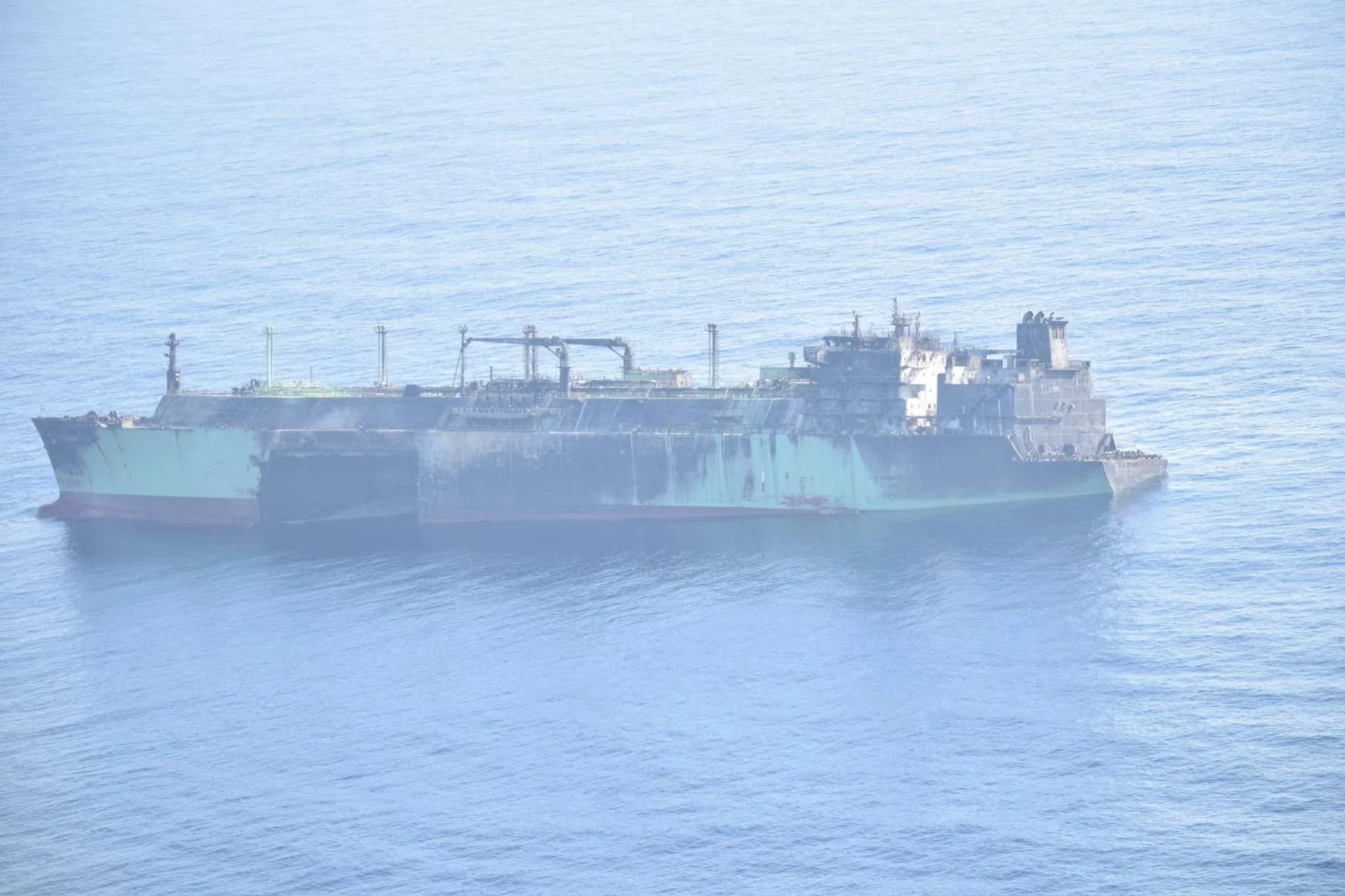 Російський танкер для перевезення СПГ «Арктик Метагаз», пошкоджений на початку цього місяця та наразі дрейфуючий без екіпажу, плаває в міжнародних водах Середземного моря між Мальтою та італійськими островами Лампедуза та Ліноза, як видно з цього фото з роздаткового матеріалу, опублікованого 13 березня 2026 року — Військово-морські сили/Матеріали прес-служби