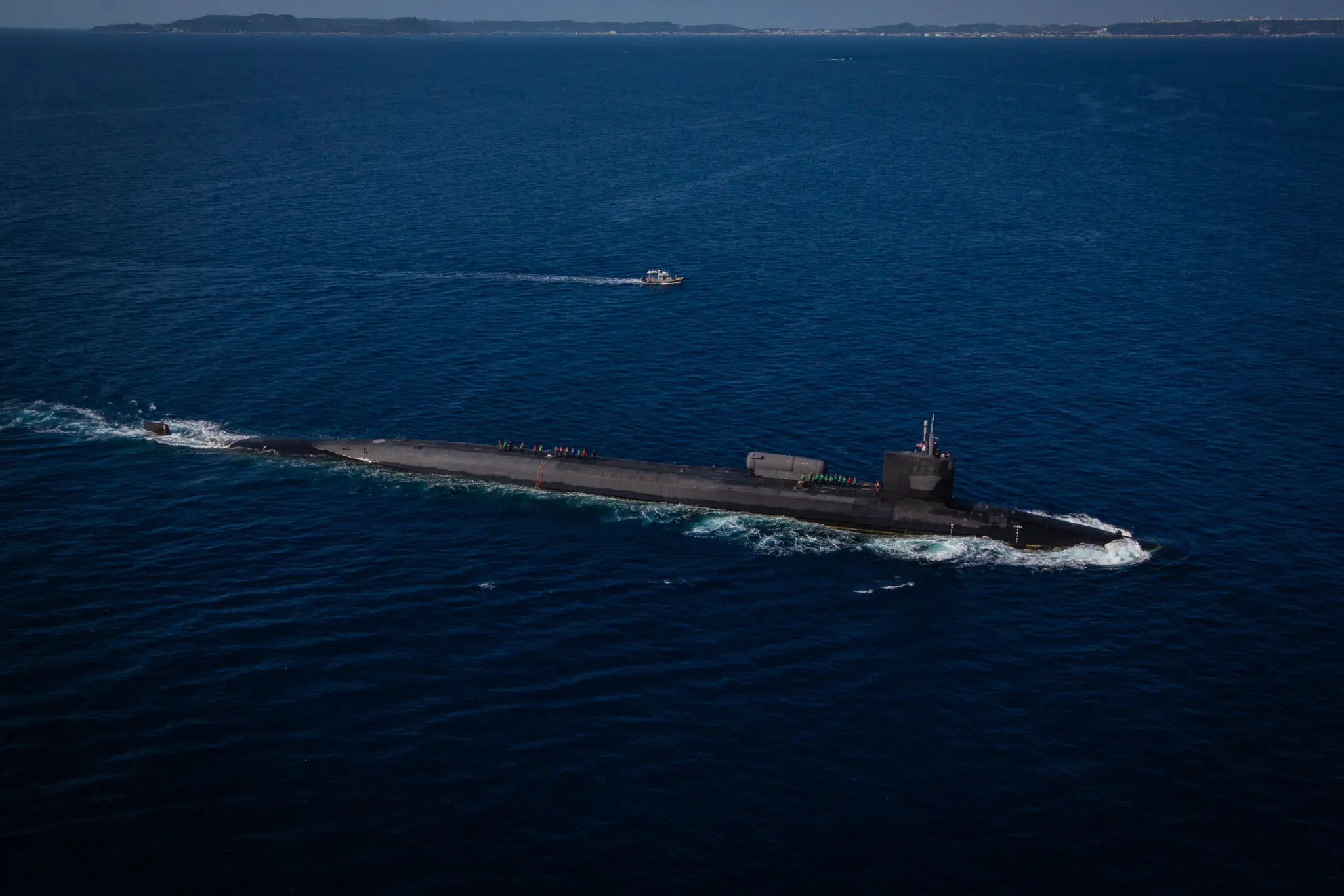 Підводний човен класу «Огайо», зображений тут наданим Корпусом морської піхоти США, довший за височинність Монумента Вашингтона — Корпус морської піхоти США
