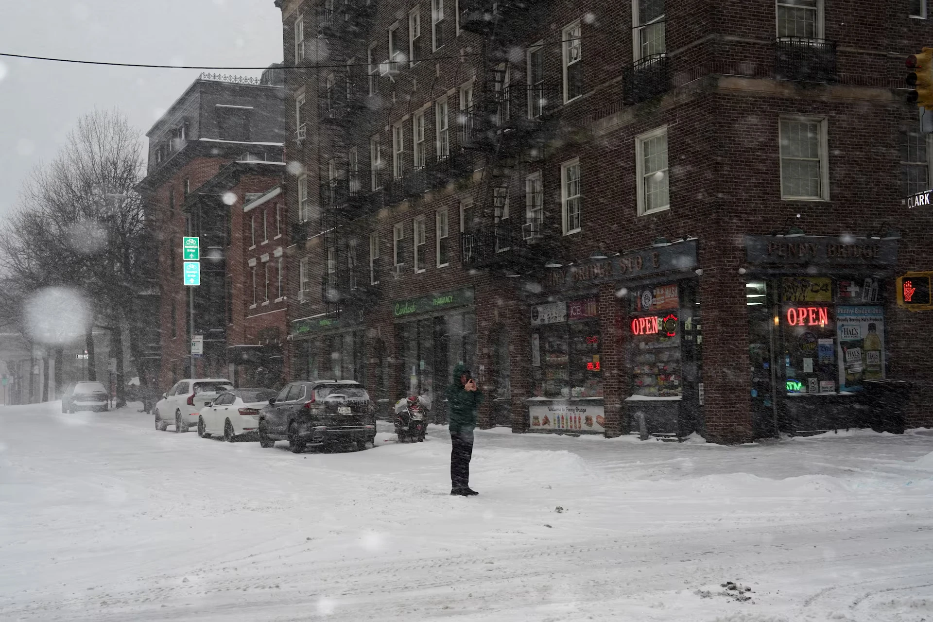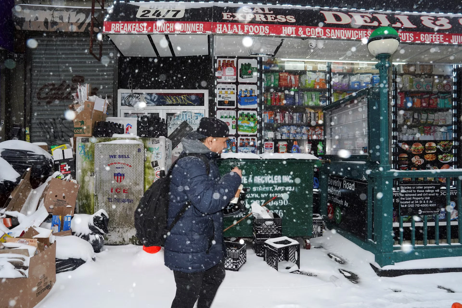Пішохід проходить повз магазин Sal Express Deli & Grocery, поки Зимова буря Ферн простягається через велику частину Сполучених Штатів, у Брукліні, Нью-Йорк, США, 25 січня 2026 року — Бін Гуан