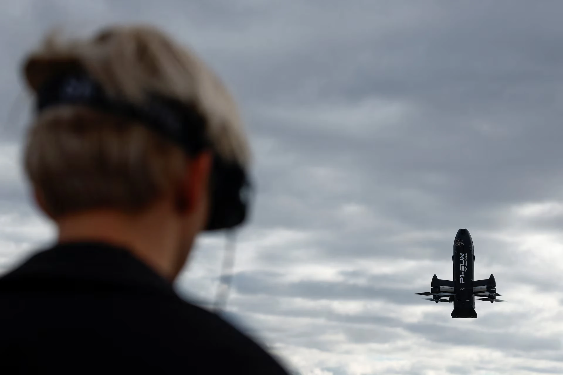 Співробітник компанії SkyFall керує безпілотником-перехоплювачем P1-Sun FPV під час випробувального польоту на полігоні, на тлі російського вторгнення в Україну, в невідомому місці, Україна, 6 березня 2026 року — Валентин Огіренко