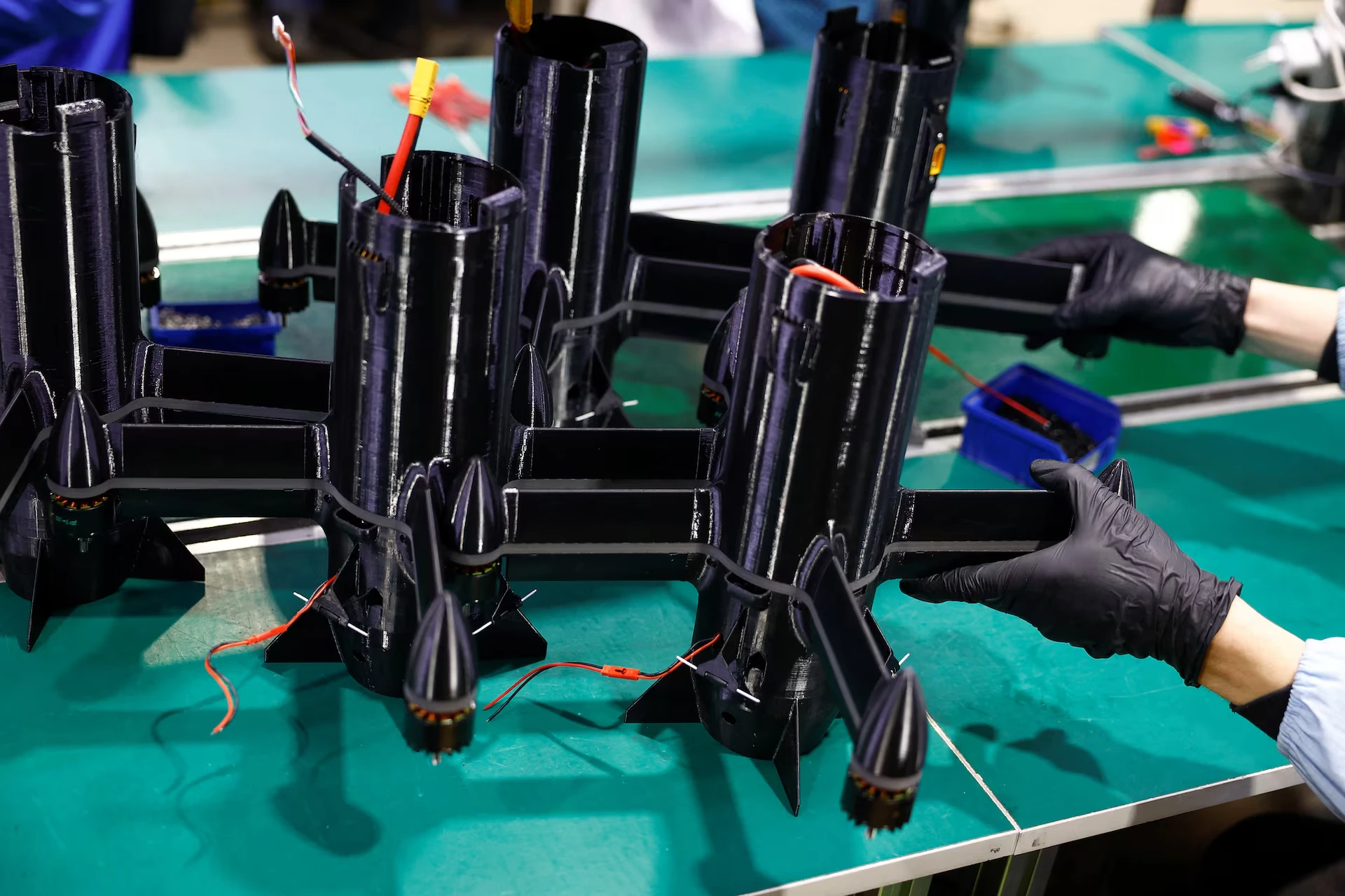 Працівник компанії SkyFall збирає дрони-перехоплювачі P1-Sun FPV на виробничому об'єкті під час нападу Росії на Україну, у нерозголошеному місці, Україна, 6 березня 2026 року — Валентин Огіренко