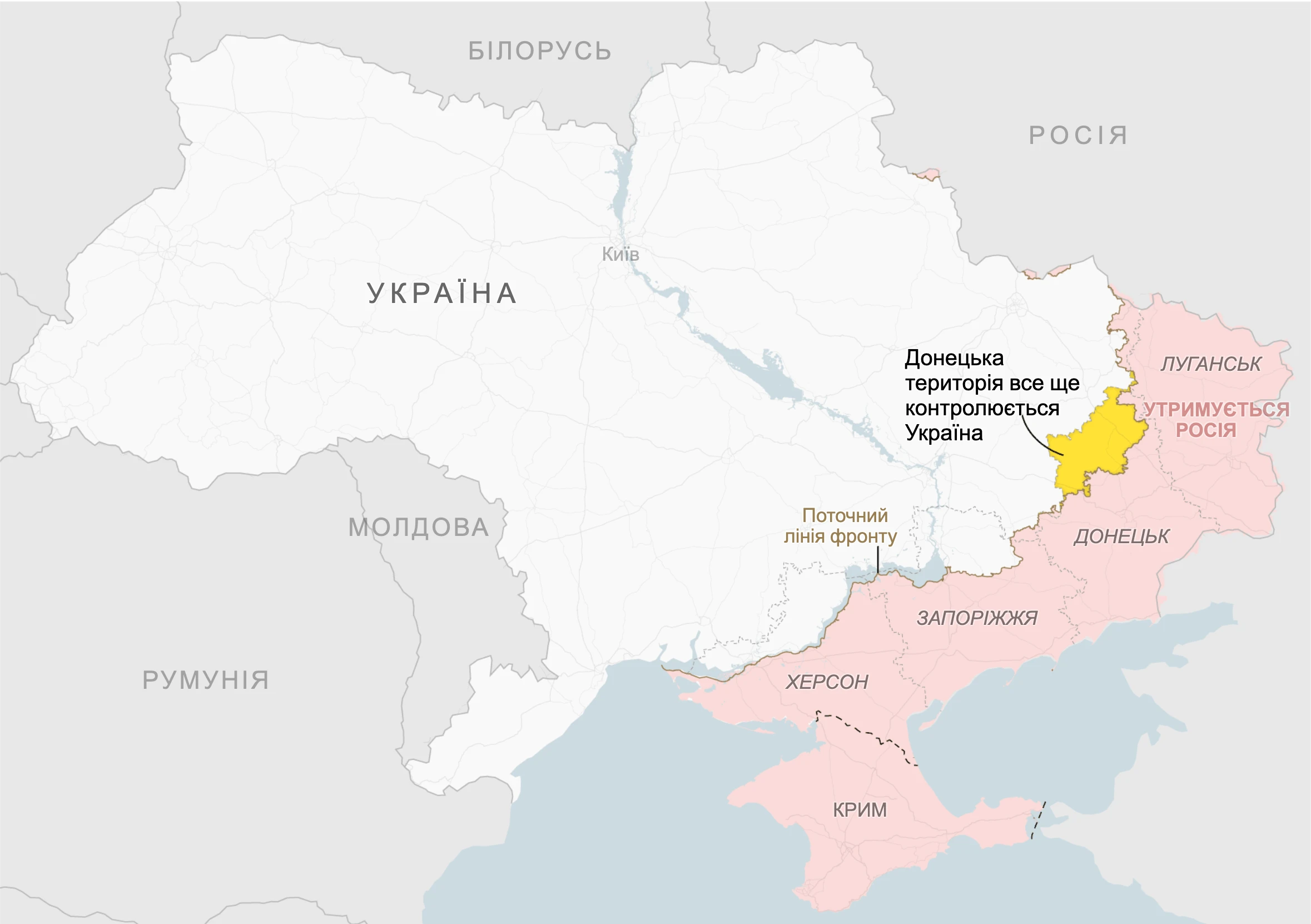 Для Кремля така логіка виглядає як нав’язування правил, а не торг. Росія контролює значну частину Донеччини, тому окупація Донецької області сприймається як «досягнення», від якого важко відступити без втрати обличчя. Внутрішня пропаганда прив’язала війну до карти.