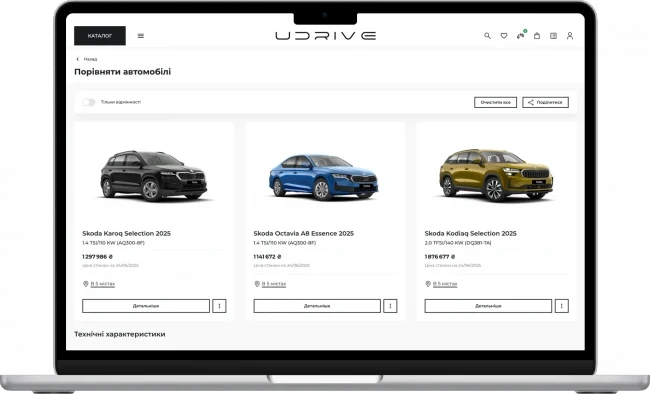 “Я сам колись витрачав години, роздруковуючи технічні описи, розкладаючи їх на столі, виділяючи маркером відмінності, щоб зрозуміти, чим одна комплектація краща за іншу. Тепер усе значно простіше — на платформі UDRIVE достатньо обрати бажані моделі, натиснути “порівняти” і зрозуміти повну картину, включно з цінами, характеристиками та особливостями кожної”, — пояснює CEO UDRIVE Ігор Боярин.