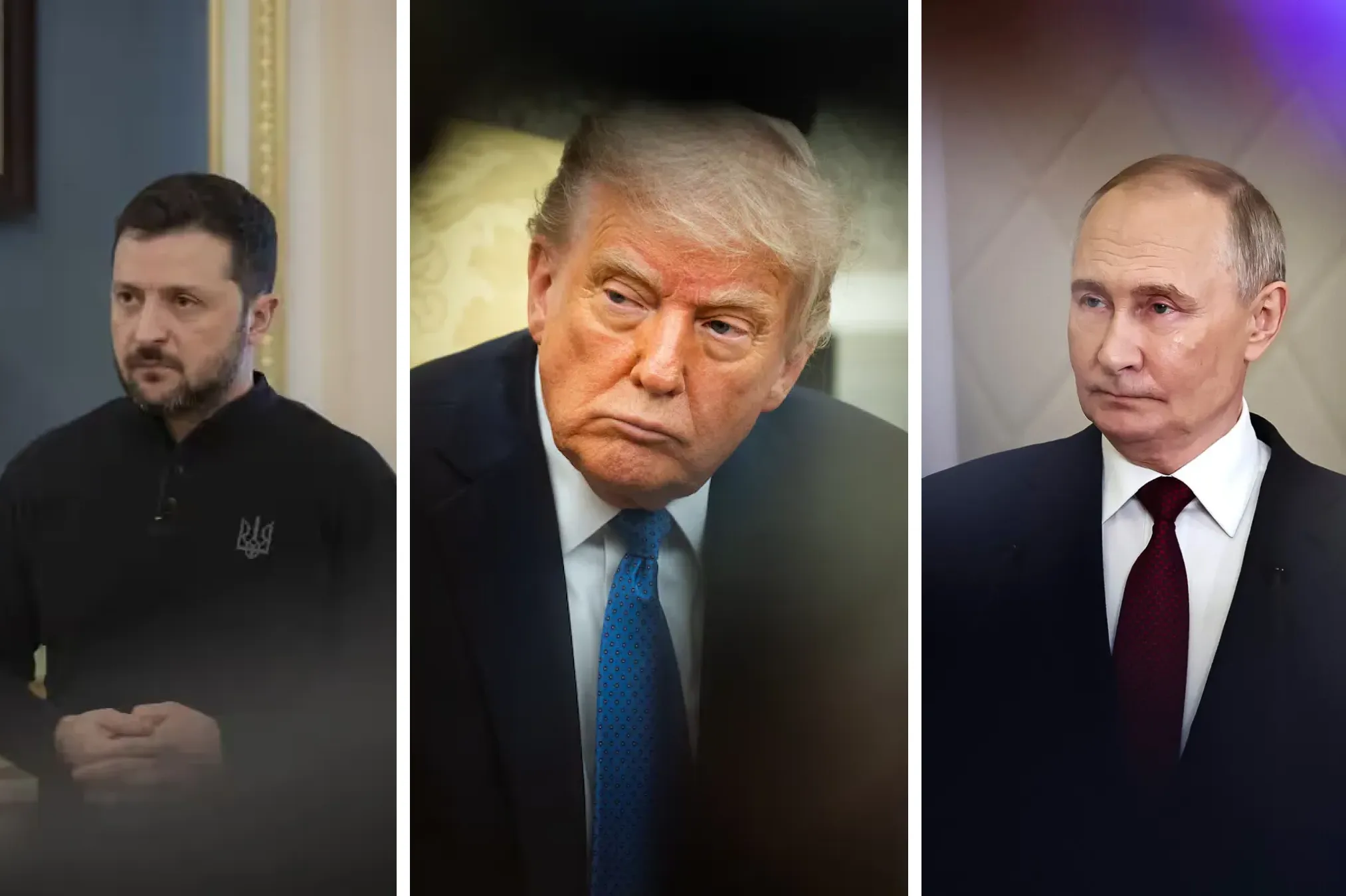 Володимир Зеленський, Дональд Трамп, Володимир Путін — Фото: Офіс президента України; Деметріус Фрімен; Михайла Терещенка