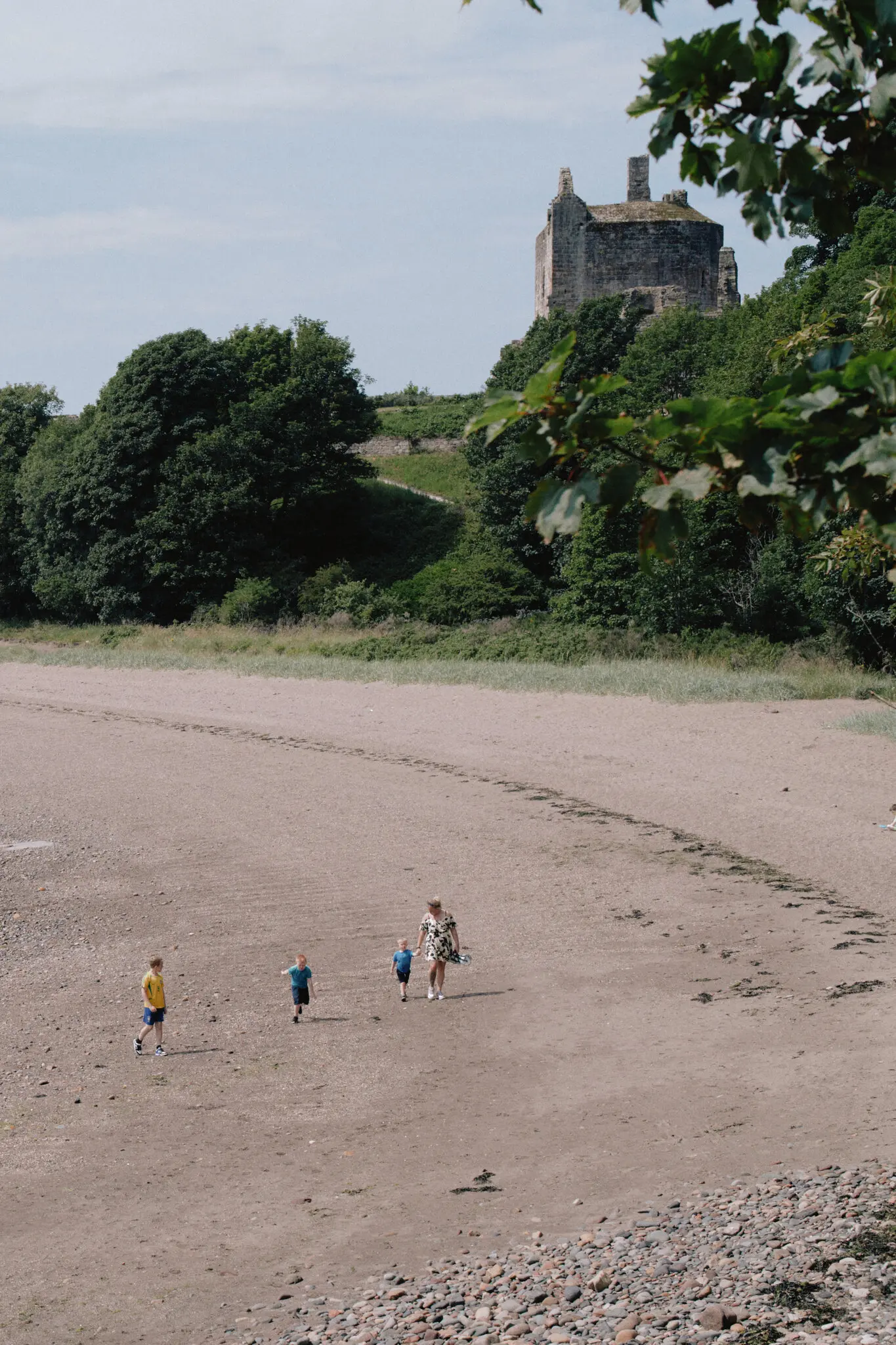У Кіркколді замок Рейвенскрейг XV століття височіє над пляжем, звідки письменниця розпочала свою подорож — Майкл Вінс Кім