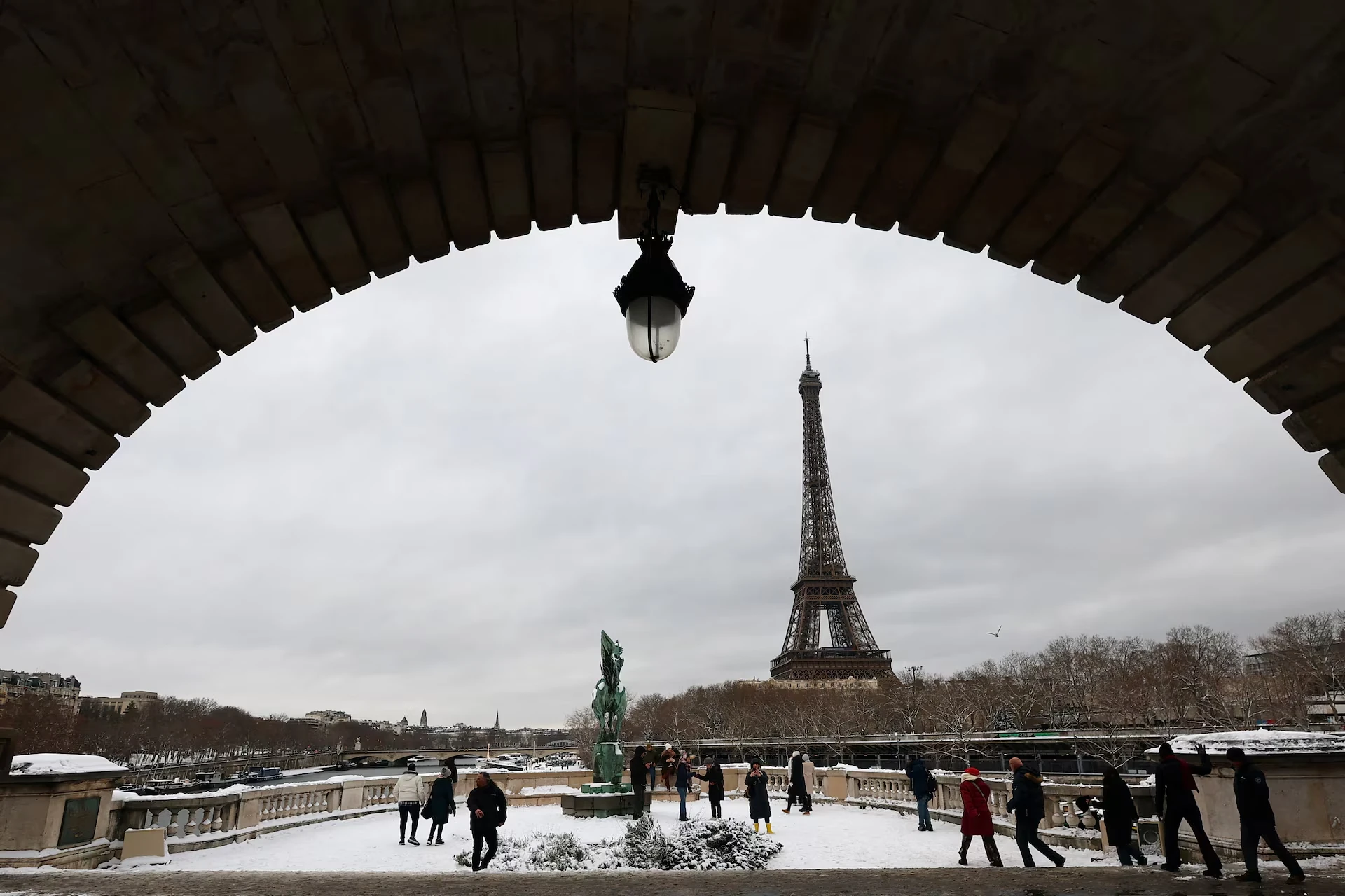 Вид на засніжений міст Понт-де-Бір-Хакейм на тлі Ейфелевої вежі в Парижі, коли зимова погода зі снігом і низькими температурами охопила частину країни, Франція, 7 січня 2026 року — Гонсало Фуентес