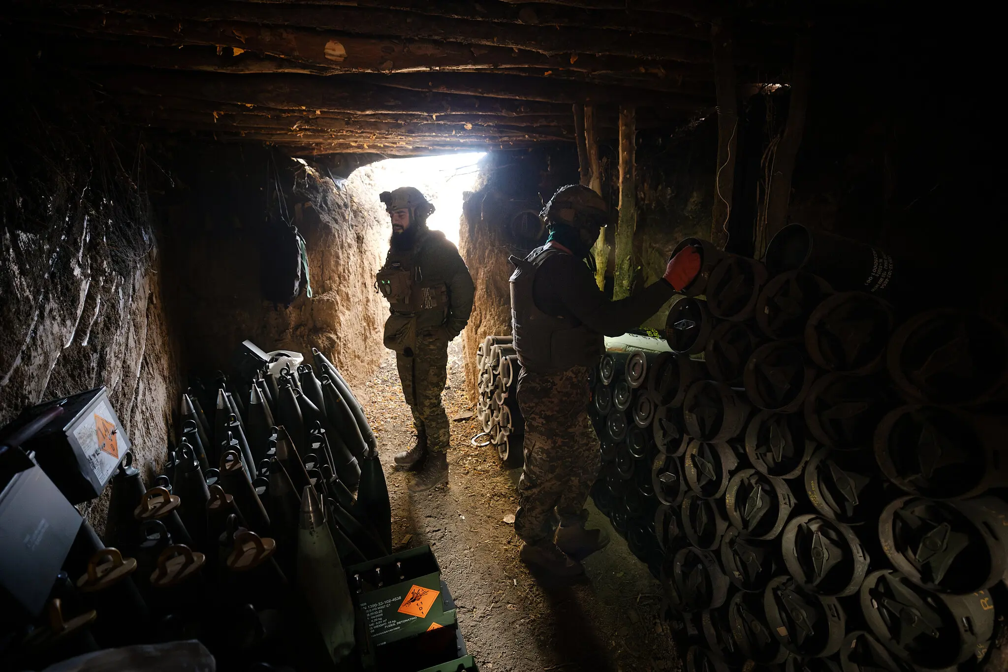 Боєприпаси, що зберігаються під землею на українській вогневій позиції в Запорізькій області на сході України в жовтні. Пан Зеленський запобіг катастрофічній нестачі боєприпасів і наполегливо працював над тим, щоб відновити слабшаючу підтримку США — Тайлер Хікс